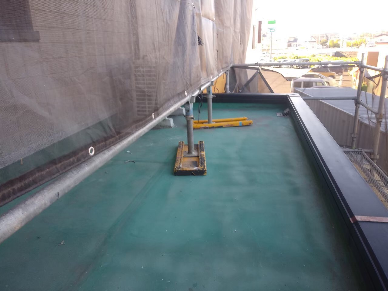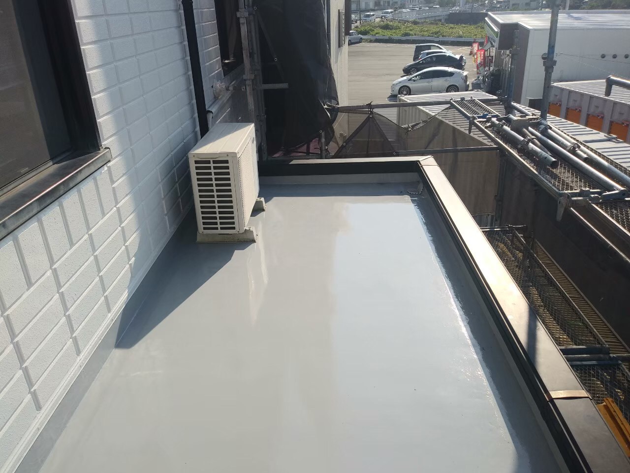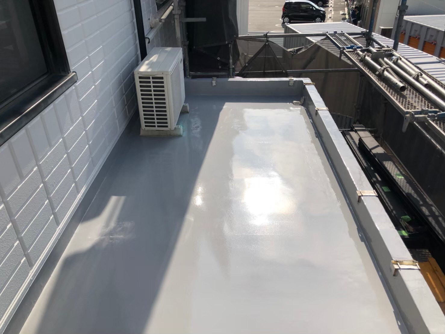 防水材は紫外線に弱い性質を持っています。トップコートを塗ることで、紫外線による劣化を防ぎ、完成となります。