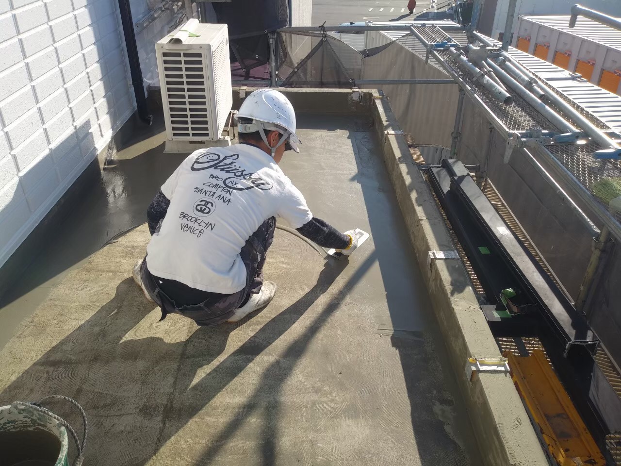 古くなったコンクリートの表面はデコボコしていたり、ひび割れ等があるため、場合によっては調整をする時もあります。