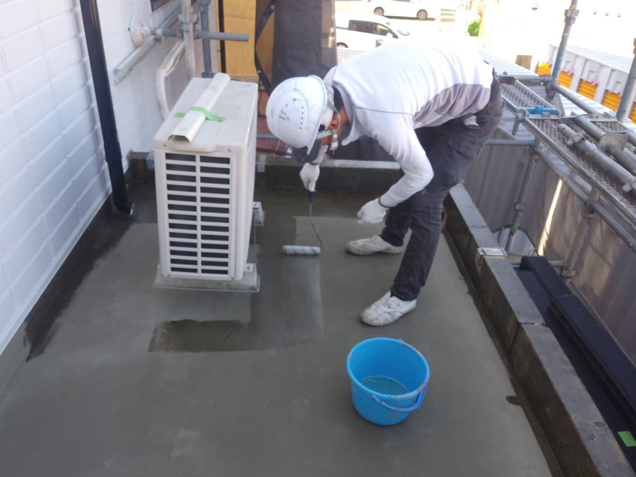 防水材と、下地との接着剤の役割をしています。プライマーを行うことで、防水材が剥がれを防ぎます。
